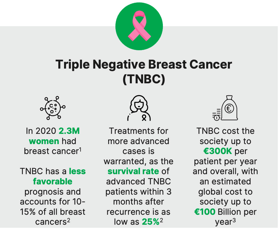 The global therapeutics market for cancer drugs is 166 billion USD, consisting of mix of old and newer drugs. The world’s largest cancer drug is MSD’s Keytruda® (pembrolizumab) which is indicated for several cancers and has an annual turnover of 17 billion USD.